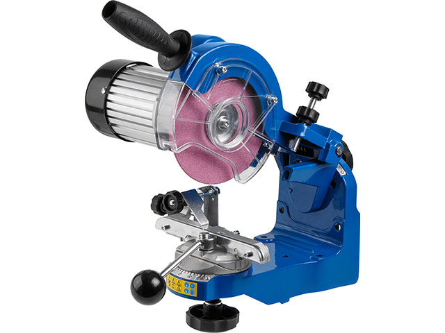 Станок для заточки пильных цепей BULL имеет надежный двигатель и ряд преимуществ для работы с различными видами цепей: прочное металлическое основание, большое количество регулировок, подсветка рабочей зоны, прозрачный защитный кожух, два заточных диска разной толщины в комплекте, возможность настенного крепления.
