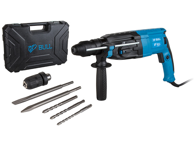 - дополнительная рукоятка – 1 шт.- дополнительный быстрозажимной патрон – 1 шт.- ограничитель глубины - 1 шт.- сверло по бетону - 3 шт.- зубило плоское - 1 шт.- зубило острое - 1 шт.