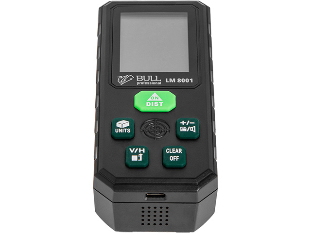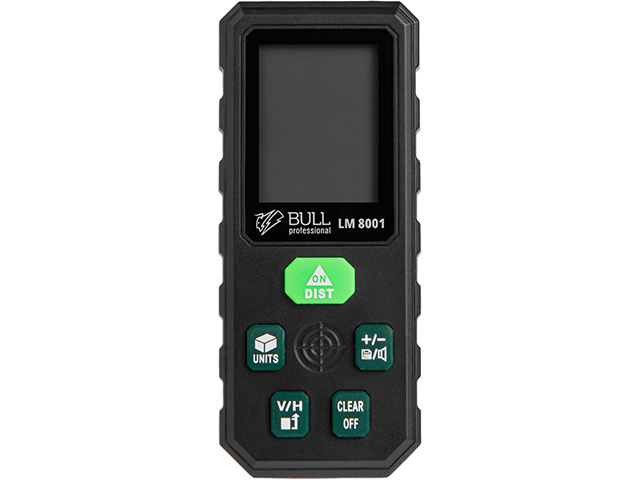 Высокоточный лазерный дальномер BULL LM 8001 идеально подходит для быстрых измерений при выполнении строительно-монтажных, планировочных и геодезических работ. Все благодаря исключительной точности с погрешностью - 2 мм и максимальному диапазону измерений в 80 метров. Ключевым преимуществом данной модели является функция проекции лазерного креста зеленого цвета, в своем роде этот прибор выполняет функции нивелира и дальномера. Дальномер оснащен базовыми и продвинутыми вычислительными функциями. В том числе 4 различных вариации применения теоремы Пифагора. Прибор имеет отверстие для крепления на штатив с посадкой 14. В дополнение к этому, можно выбрать начальную точку измерений от места крепления на штатив. Яркий дисплей значительно упростит эксплуатацию прибора. Прибор оснащен функцией измерения угла: отклонения от горизонтальной плоскости.