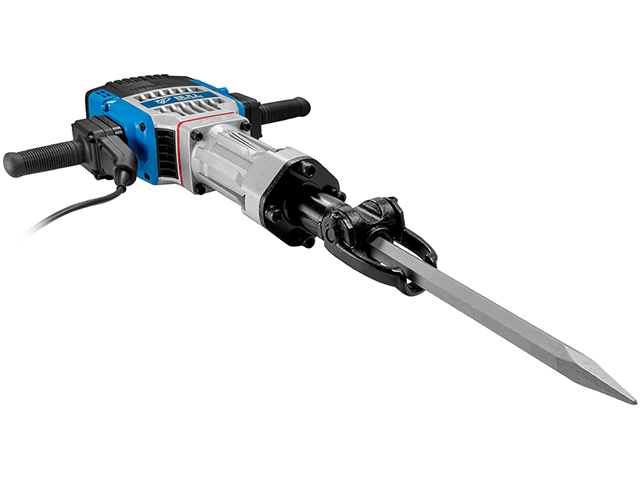 Отбойный молоток предназначен для дробления бетона, слома бетонных покрытий, проделывания проёмов, а также ведения самых сложных демонтажных работ. Шестигранный патрон НЕХ 28 мм позволяет надежно фиксировать долота, а также обеспечить удобство смены. Модель обладает особой системой системой виброгашения, что делает работу менее утомительной для оператора. Корпус редуктора изготовлен из магниевого сплава, что обеспечивает дополнительную защиту внутренних узлов, а также лучший отвод тепла. Обладает оптимальным удобством использования: эргономичные рукоятки с мягкой накладкой и низко расположенный центр тяжести инструмента обеспечивают оптимальный комфорт в использовании. Отбойный молоток BULL также имеет морозоустойчивый резиновый кабель 5 м.